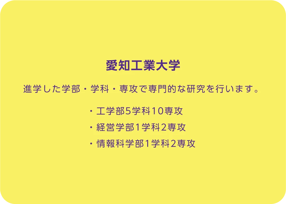 高大接続審査を経て愛知工業大学の各学部・学科・専攻へ進学し、学びを深めます。