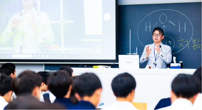 企業や大学教授による外部講師の授業で最先端科学技術や生命科学を学びます。