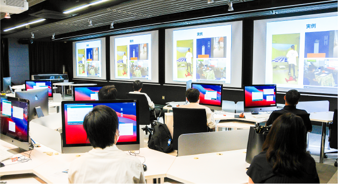 専門分野を横断して研究グループを結成し、自分たちでテーマを決めて各自が得意分野を担当しながら研究に取り組みます。12月には愛知工業大学の先生方を前に研究成果の発表を行います。