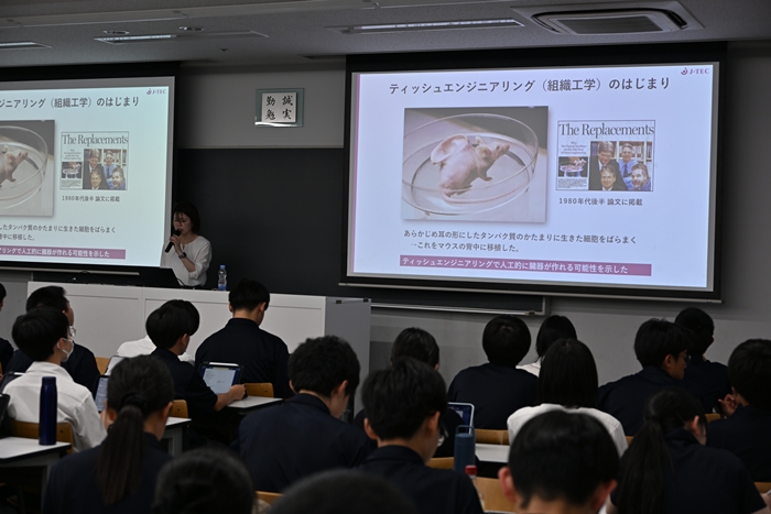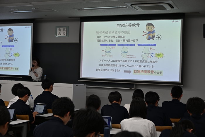 今回は、皮膚、軟骨、角膜といった細胞を使った再生医療製品とともに、再生医療という「産業」をつくっている株式会社ジャパン・ティッシュエンジニアリング(J-TEC)から講師の方に来て頂き、再生医療に関して様々なお話をして頂きました。