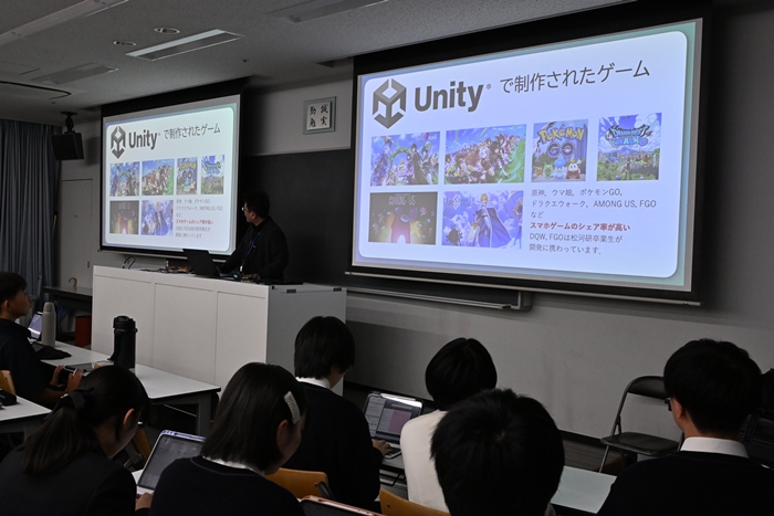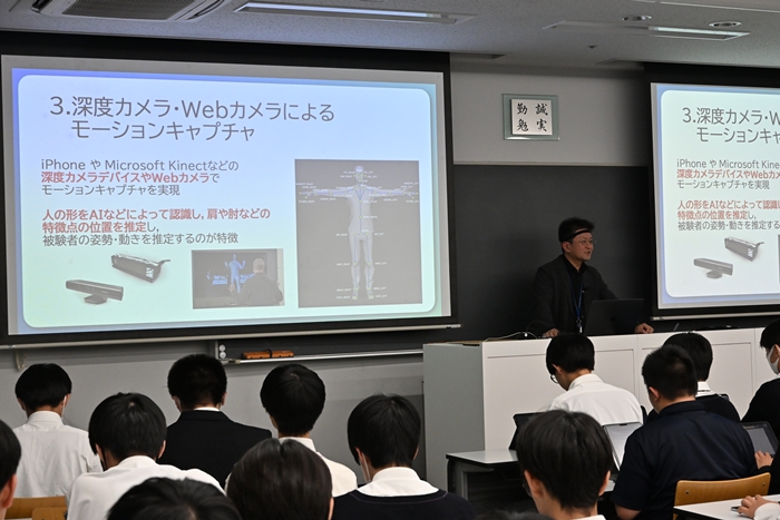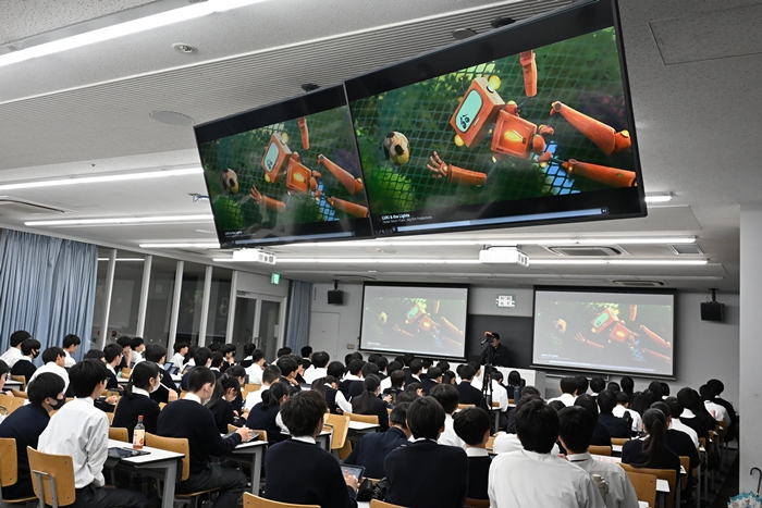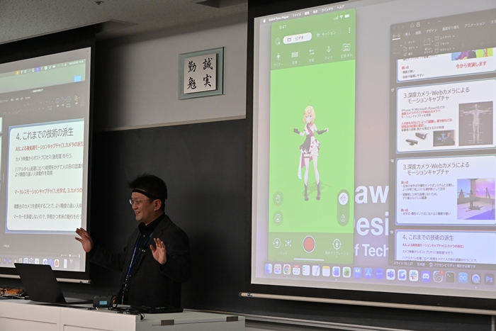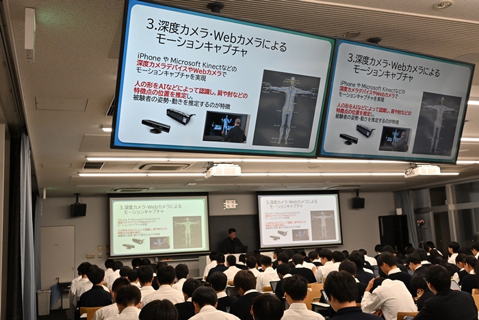 今回の講義は、人や動物などの動きをデジタル化するオーションキャプチャや、ゲーム制作などについてお話をして頂きました。
