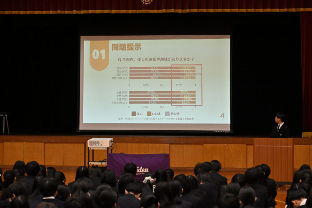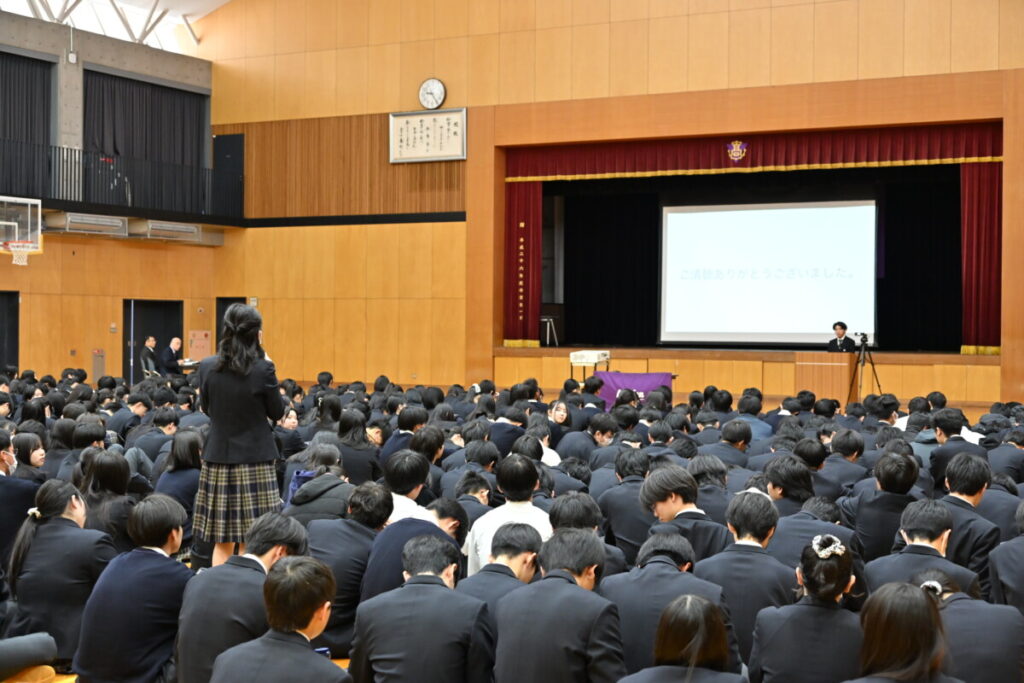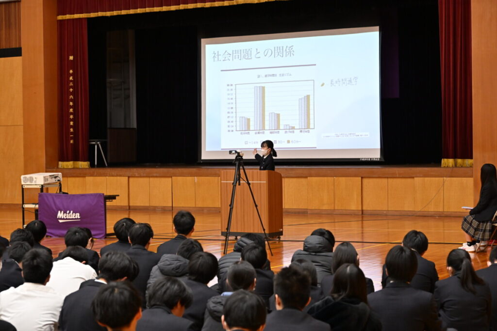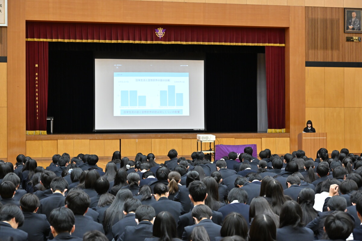 2部編成で、第1部は、2年生代表者の発表を聞く全体会。