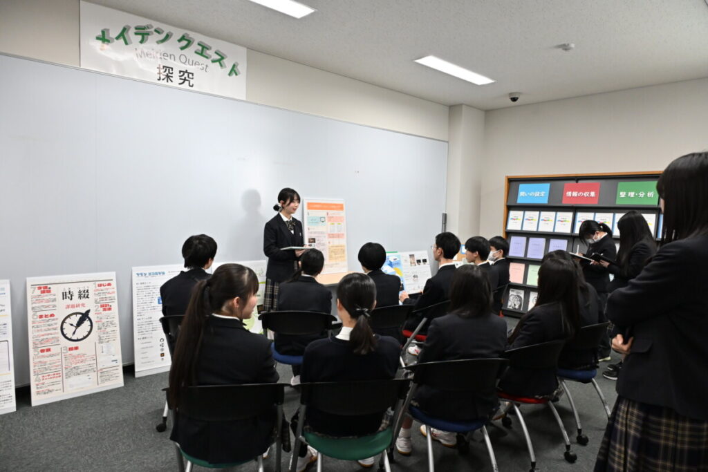 本校では、「総合的な探究の時間」を「Meiden Quest メイデンクエスト(MQ)」として、全校を上げて取り組んでいます。